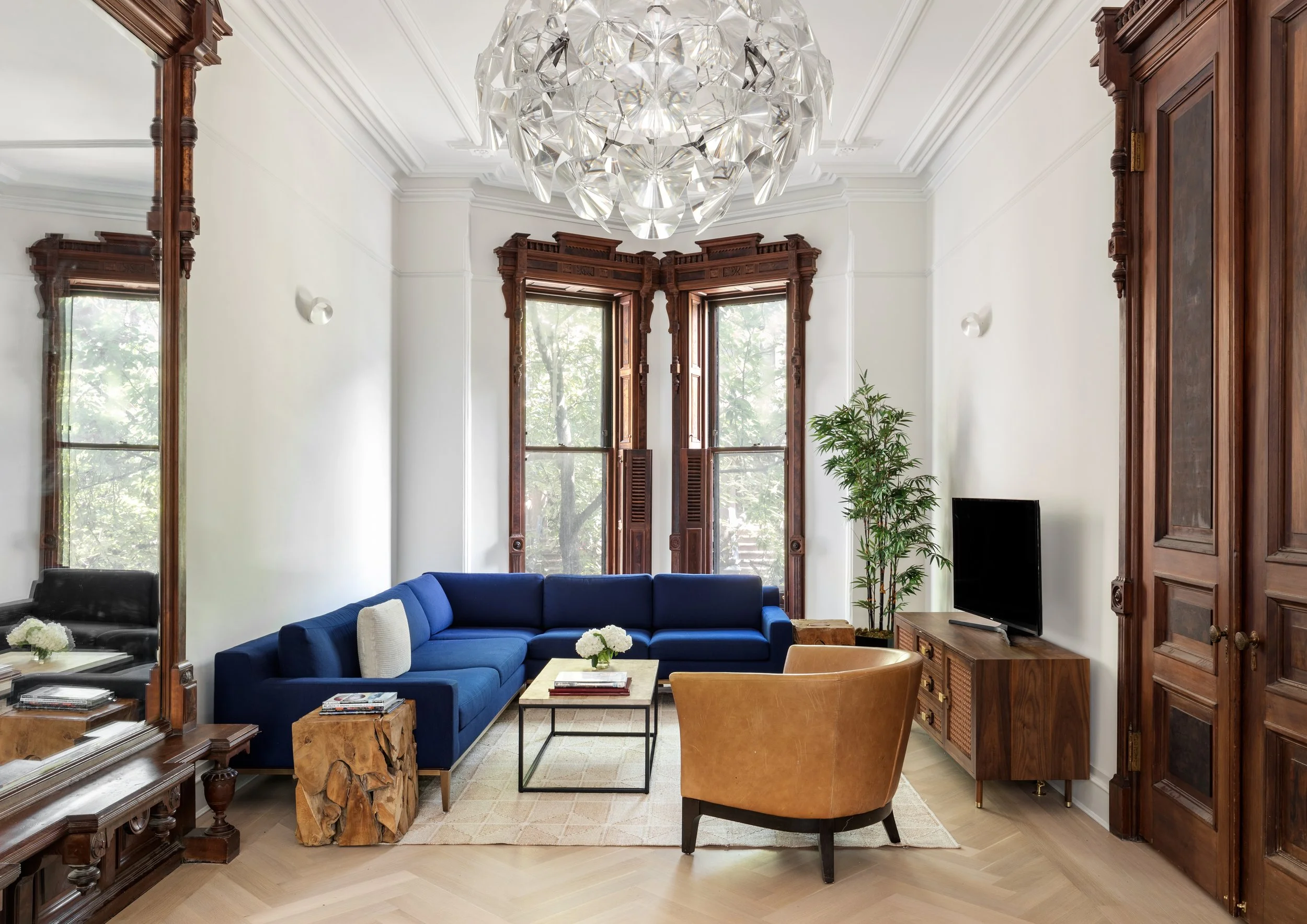 This historic Neo-Grec townhouse in the Park Slope Historic District was given a modern update. New finishes, fixtures and building systems were installed in the interior. A new rear window opening and steel deck invigorate the interior garden apartment and parlor level with new natural light while creating a new connection to the backyard.